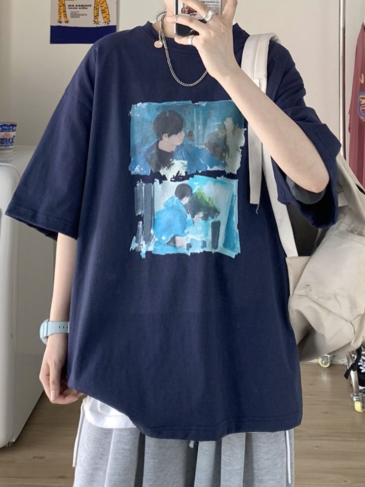 经典的圆领设计,简单大方,时尚百搭,后背是整件衣服的靓点,印花+子母设计,时尚而不失可爱,舒适的面料,手感柔和细腻,做工精良,弹性极佳,穿着舒适,简洁又富有内涵。