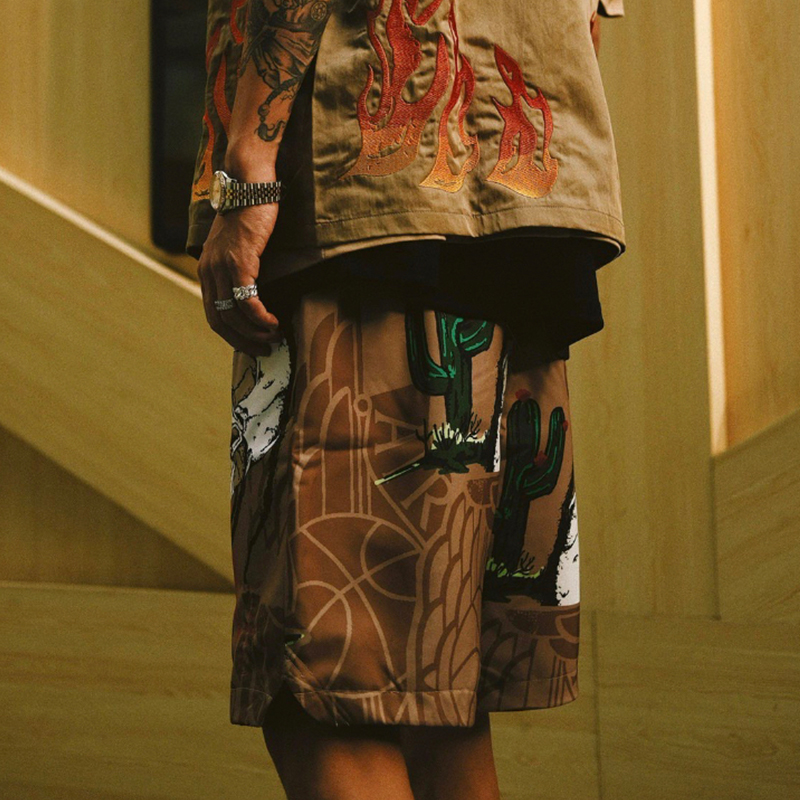宽松版型,穿着舒适自在。短裤不过膝余文乐的品味。短裤配凉拖,做简单粗暴型男。