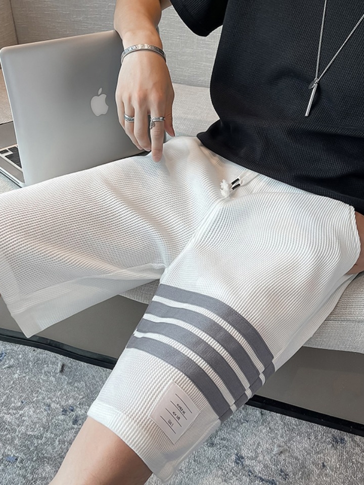 复古帅气五分裤,休闲达人必选潮品。高腰拉长腿线,穿出自信,以顺褶荷叶边修饰,抢眼个性。精致压褶营造微蓬立体感,更显裤型。