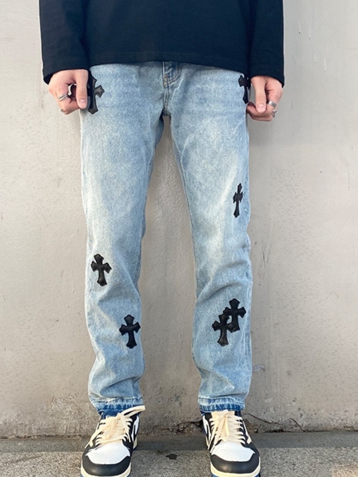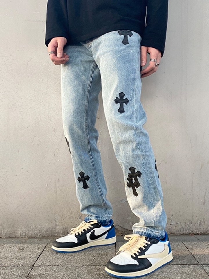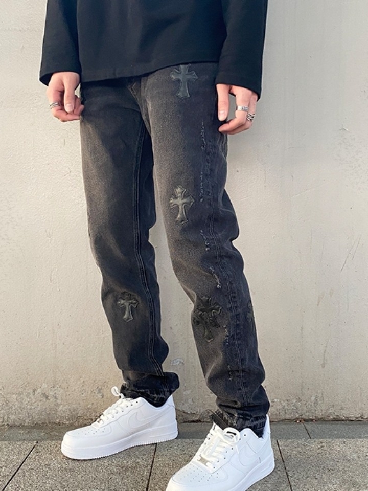 时尚毛边牛仔裤,做旧的款式,直筒的牛仔裤,简约的印花设计,更加有着时尚范,个性潮流,展现出十足的街头范。