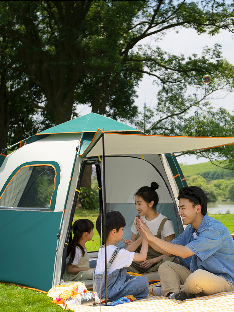 原始人户外帐篷只需1秒就可搭建完成。帐篷表面采用防晒涂层,有效阻隔98%的紫外线,经防晒测试,帐内账外最大温差可达6度!