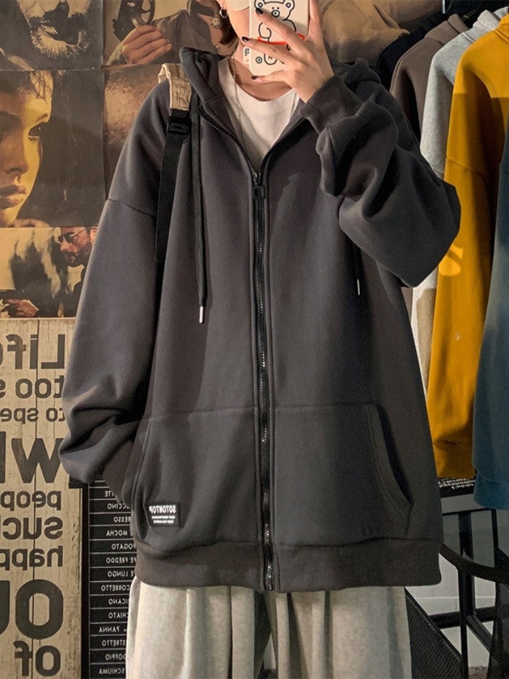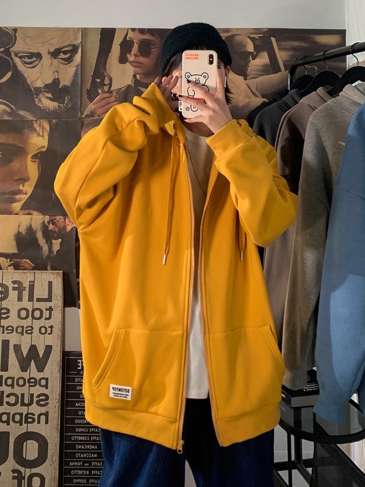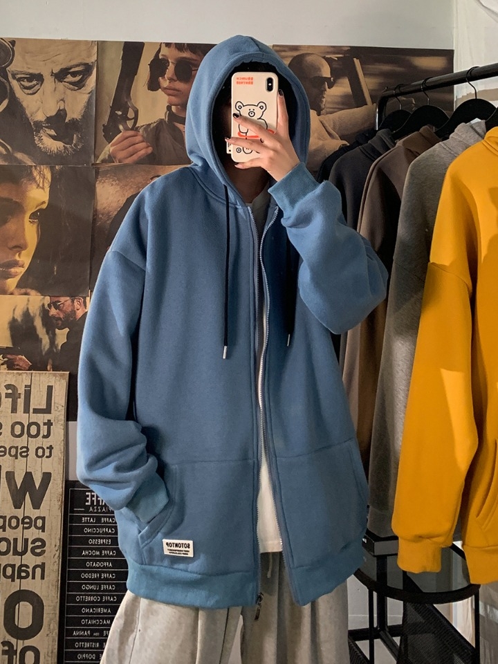 休闲时尚感十足的经典纯色开衫卫衣,版型超好,搭配上连帽的设计,更具休闲时尚感,版型修身穿着舒适!