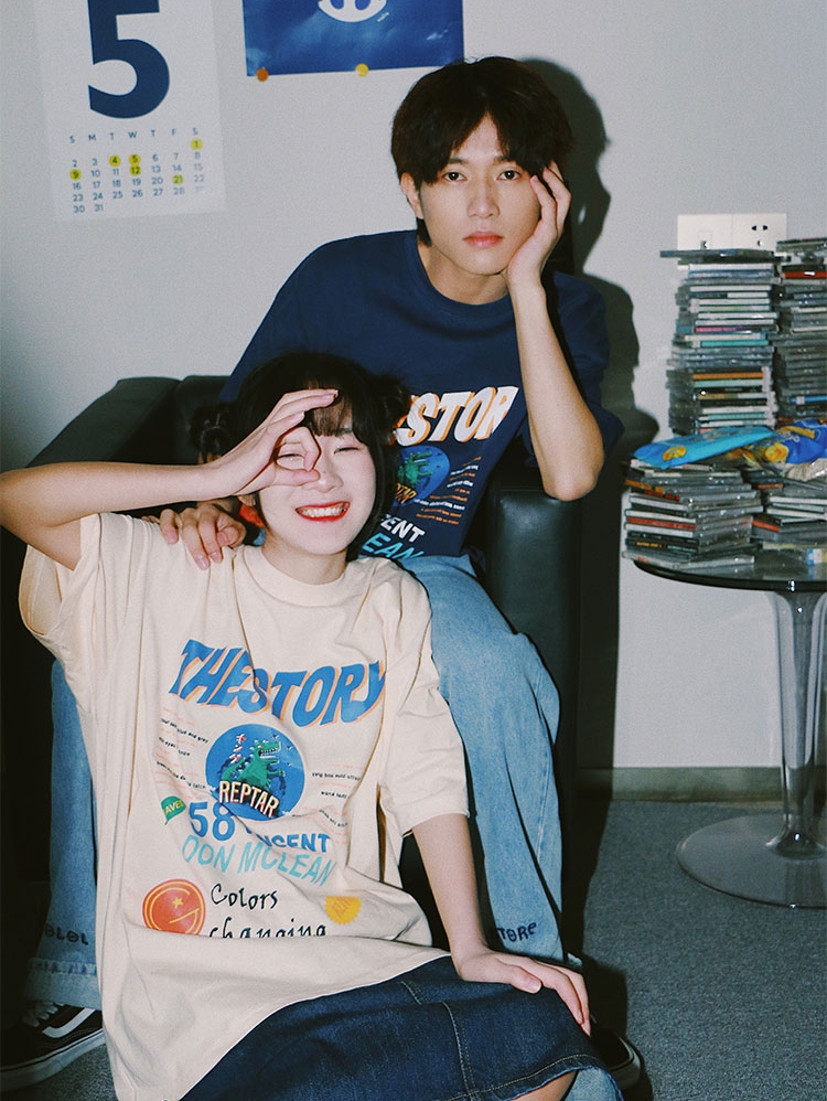 这是一款休闲的打底经典的圆领领口剪裁,勾勒出男性颈部的曲线。衣身上个性的卡通印花,为衣身注入了新鲜的活力气息,打破了纯色的沉闷感,打造出趣味的街头风气息,释放青春活力。直筒版型的剪裁,上身慵懒随性,毫无束缚感,是情侣装的不二之选。