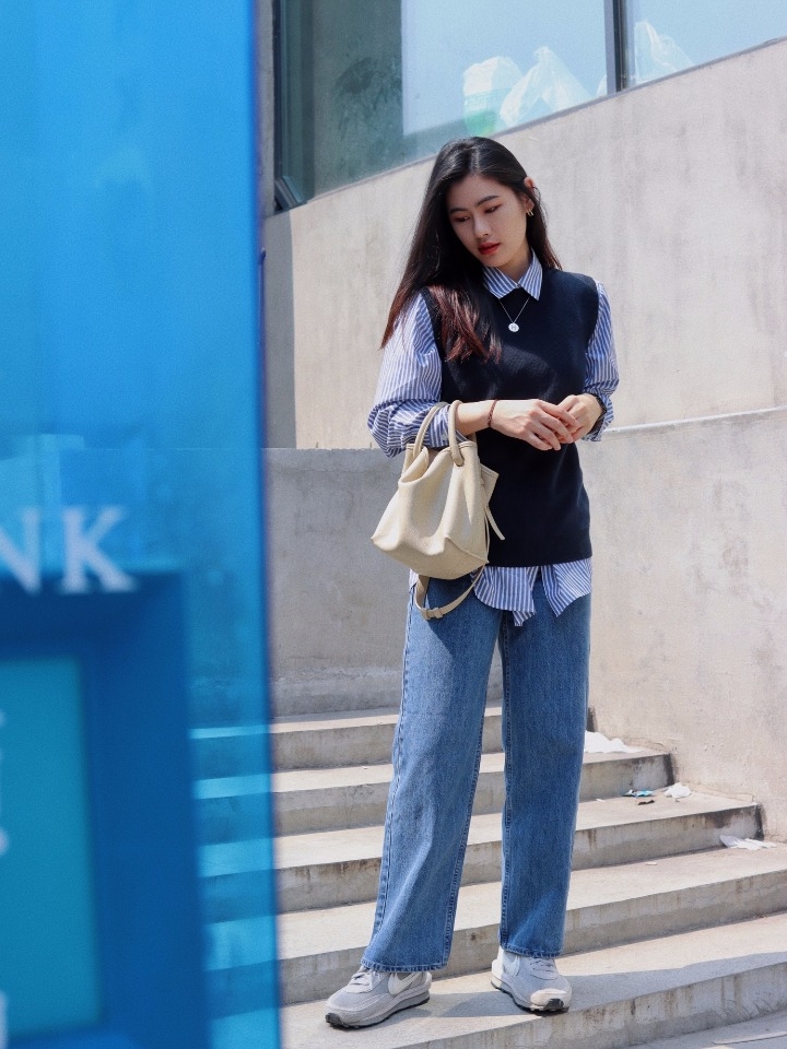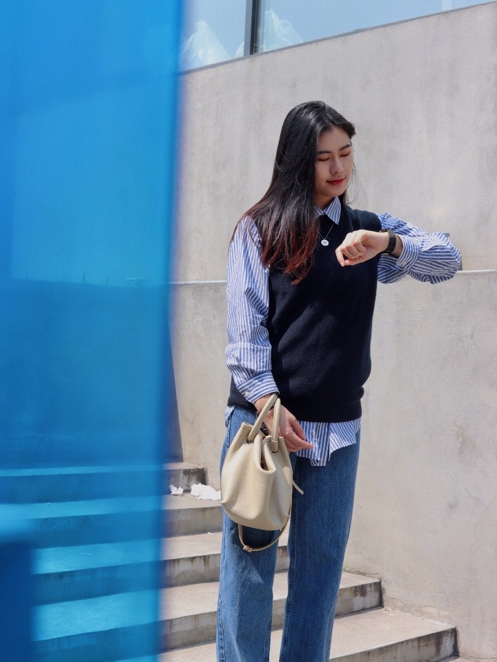 学院范十足的针织衫,我入手的是深色系的款式,不会过于的挑肤色,像我这种黄黑皮的妹子也是可以轻松驾驭的。