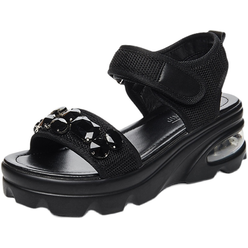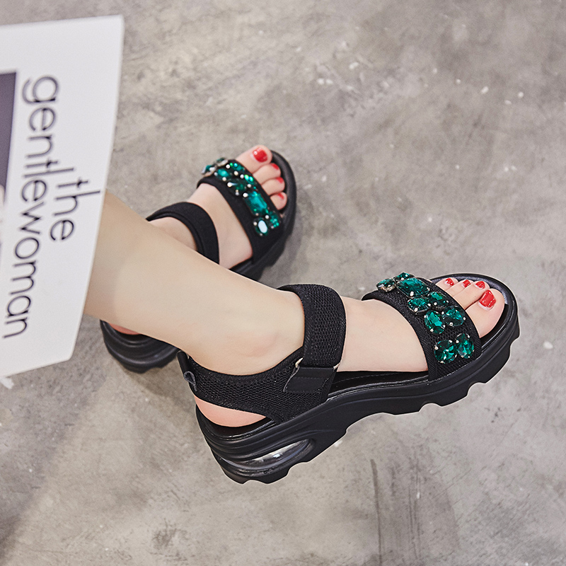 凉鞋采用了水钻的装饰,让鞋子看起来更加的时尚,而且厚底的设计,让你穿出高挑的身材。