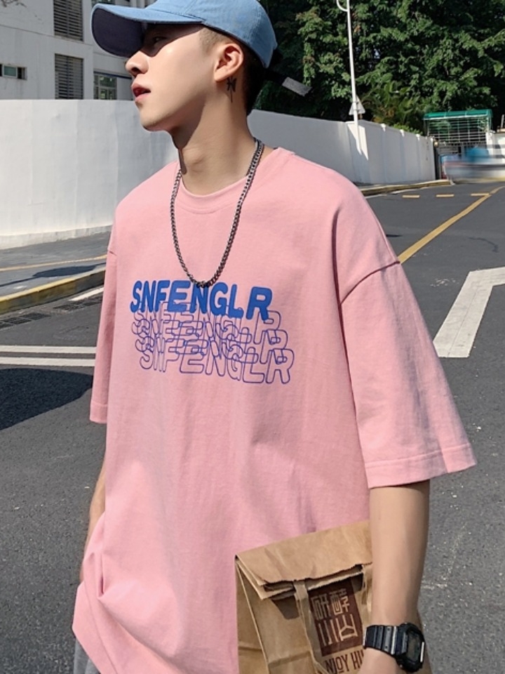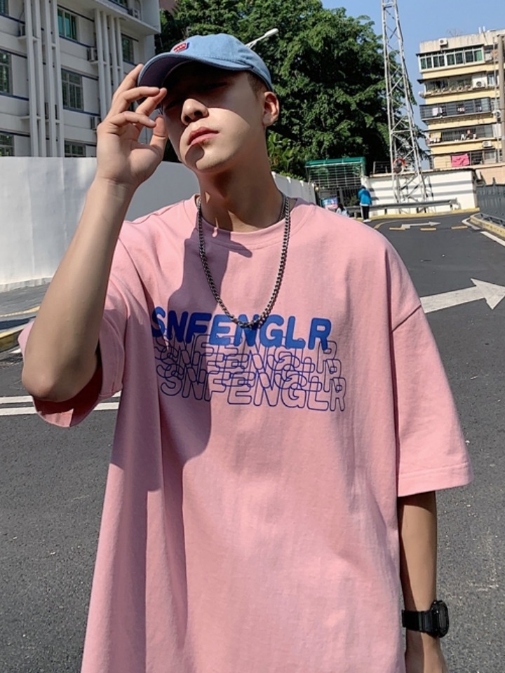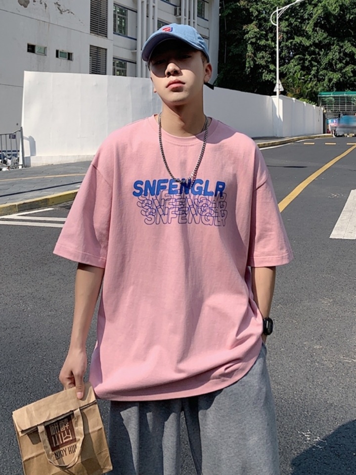 时尚圆领短袖百搭T恤,简约的粉色青春大气而且有效衬托肌肤,可爱的撞色字母绣花打破单一,增添新颖感和生命力,今季一定够潮够帅。