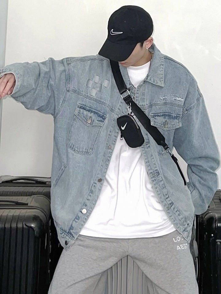 清新的浅蓝色牛仔面料,透着复古的味道,翻领的设计看上去大气干练,修饰颈部和脸部的曲线,单排纽扣方便穿脱。