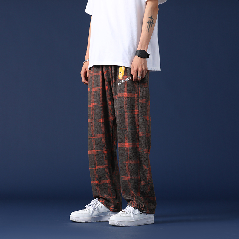 宽松的版型,上身舒适自在,宽松的裤腿,不挑身材,穿着舒适,休闲的格子,时尚百搭。