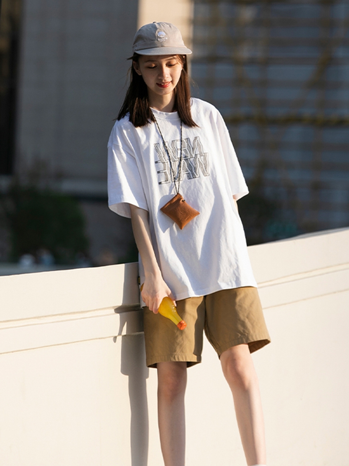 这款t恤是简约的风格,宽松的版型,时尚百搭,胸前的字母印花,很有个性,搭配牛仔裤或者短裤都很好看。