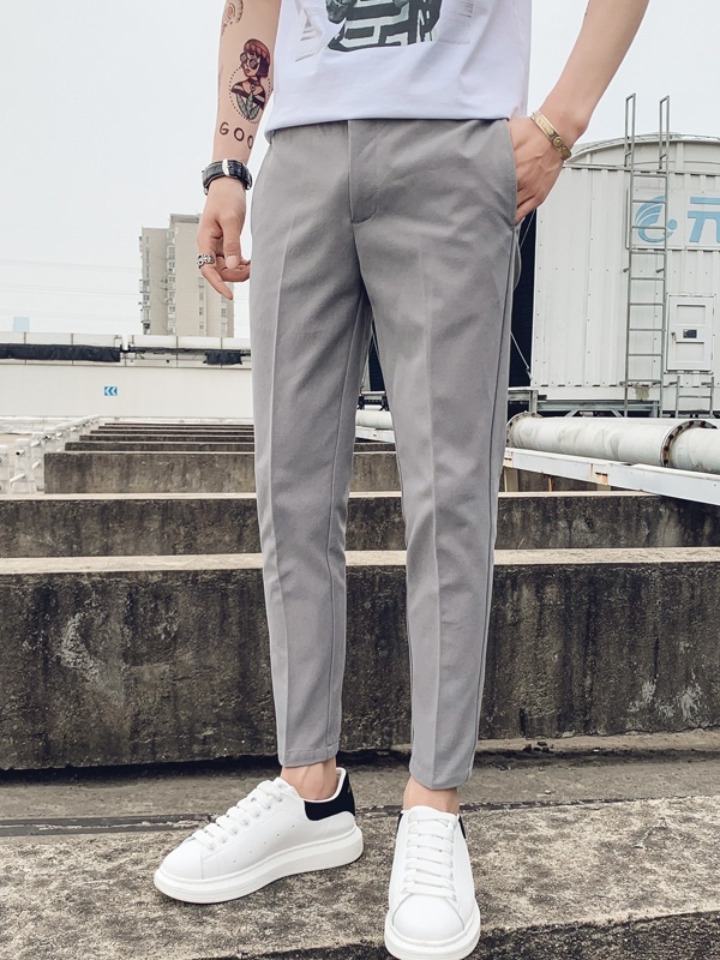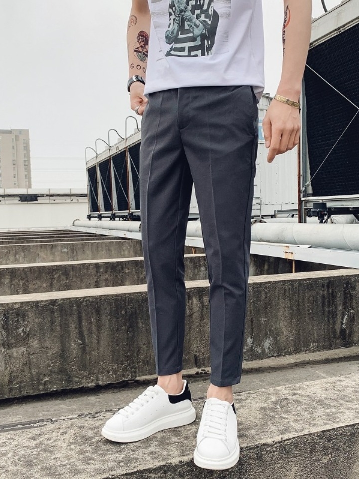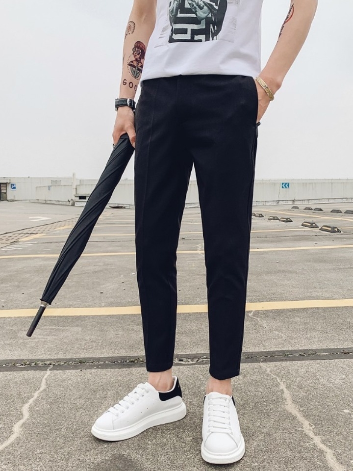 裤子采用轻薄透气的丝绵冰丝材质,柔软轻盈,在闷热的夏天穿出一丝清凉感。上宽下窄的小脚裤型,修饰腿部线条的同时,干练不显拖沓,