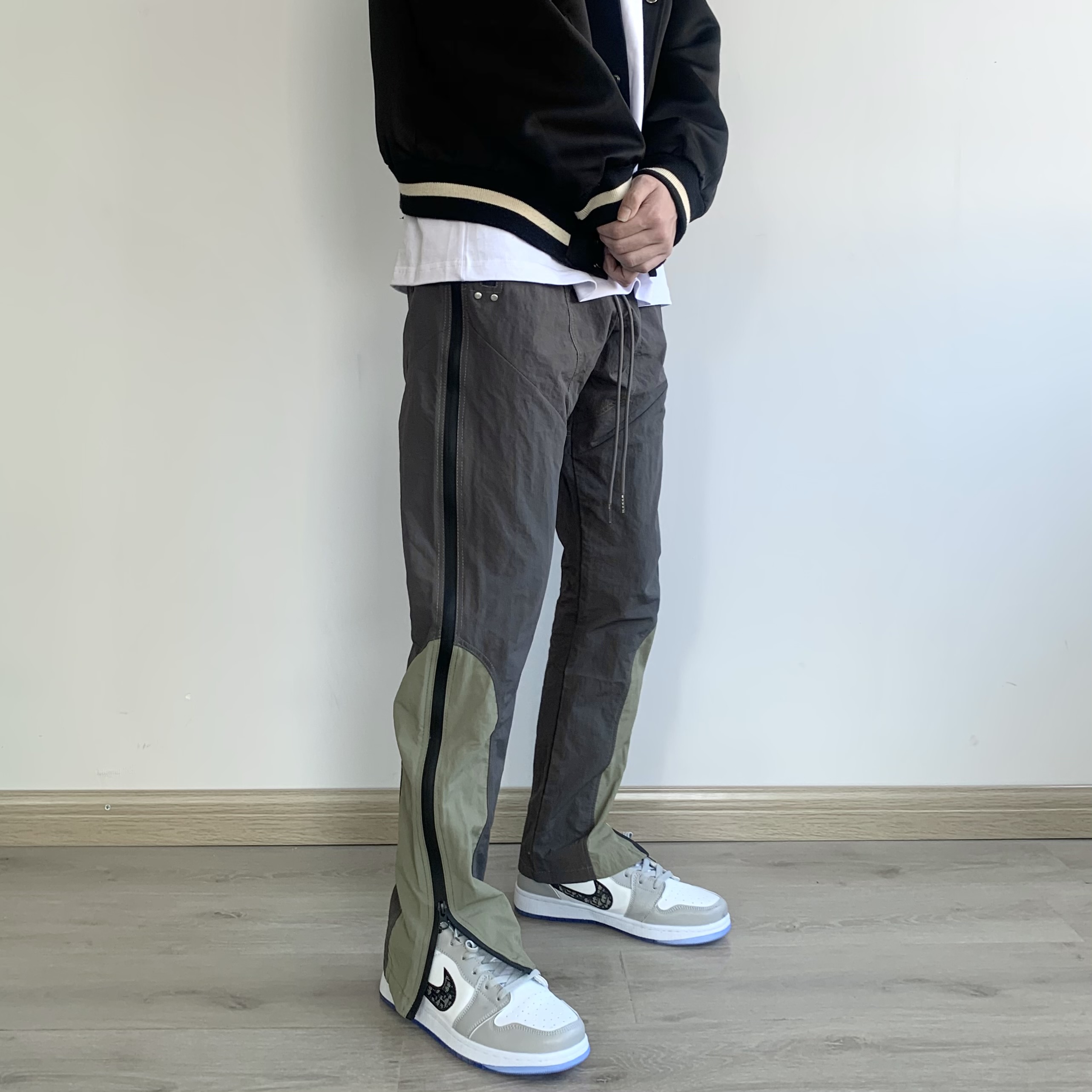 欧美高街vibe风拉链机能长裤复古街头嘻哈ins直筒侧边拼接炸街fog