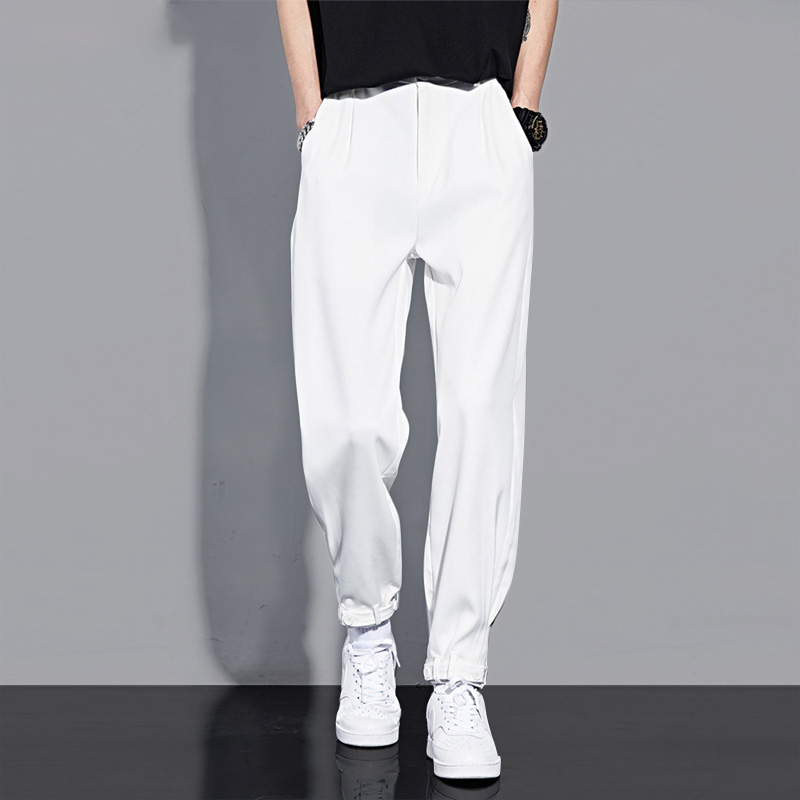 宽松的裤型,不挑身材,穿着舒适自在,九分的长度,露出脚踝,拉长腿部线条,显瘦效果很好,搭配一件T恤,就能轻松穿出时尚感。