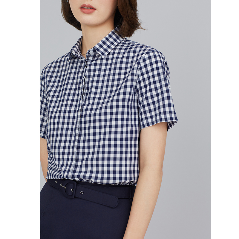 简约的纯色衬衫,清新的色调,衬托出白皙的肌肤,修身的版型,勾勒出曼妙的身姿,优雅的翻领,展露迷人的脖颈,舒适的面料,亲肤透气,上身休闲时尚。