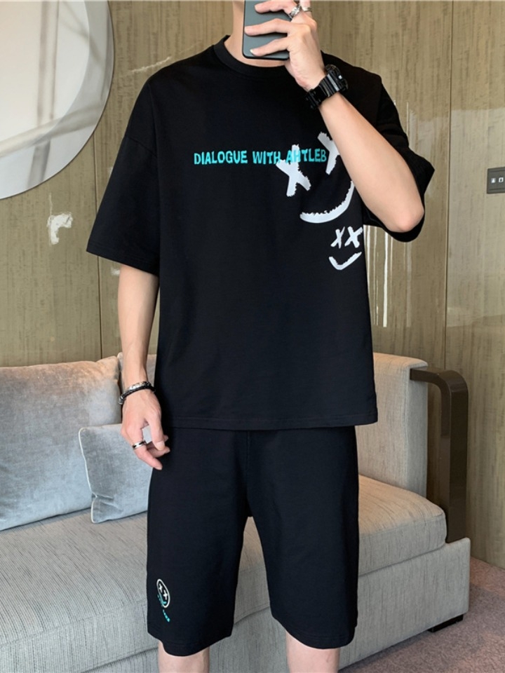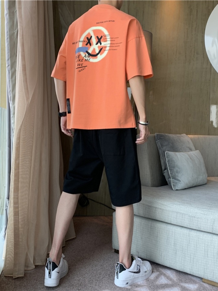 这是一款适合男童宝宝穿的夏季款儿童短袖套装。短袖采用的是拼色插肩设计,搭配精巧的卡通元素,更显可爱活泼。