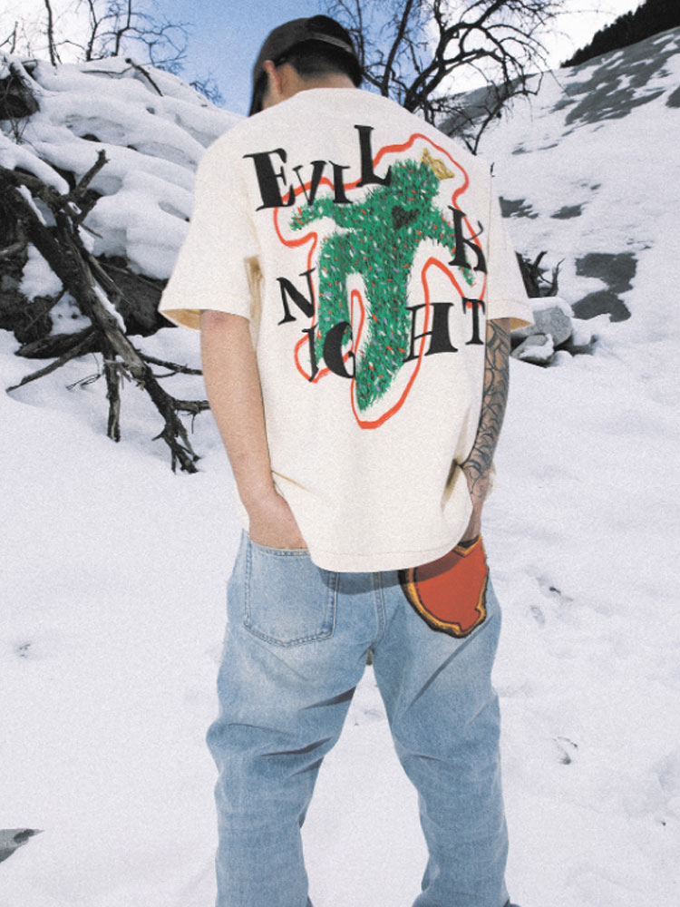 EVILKNIGHT这款T恤,采用清新的米白色调渲染,配以独特的印花,醒目吸睛,打破了纯色的单调感,展示出满满的休闲气息。