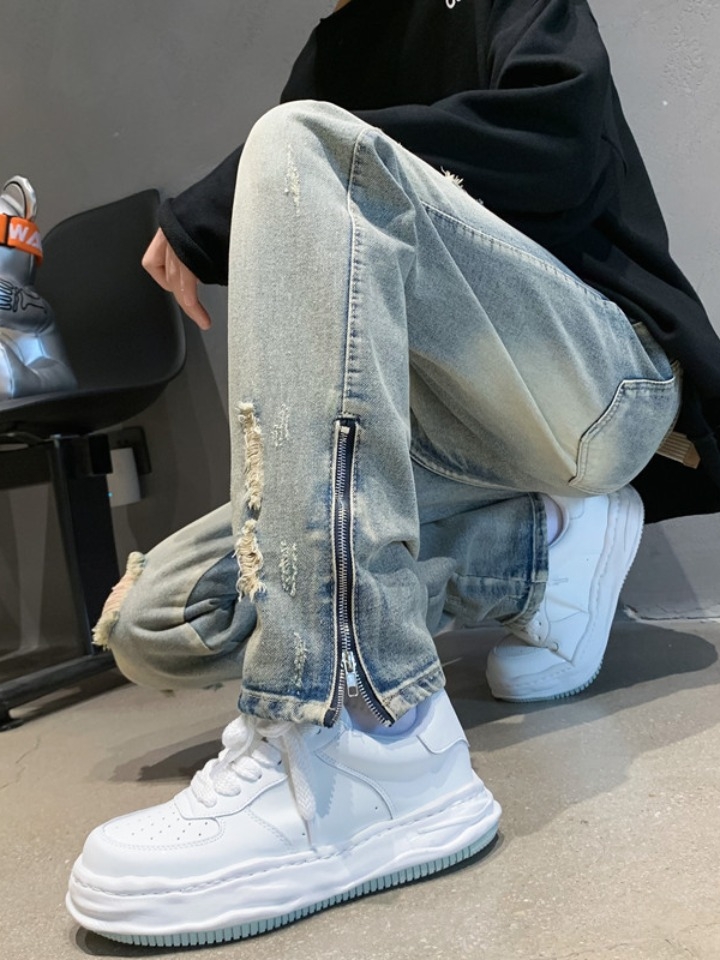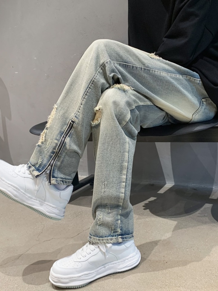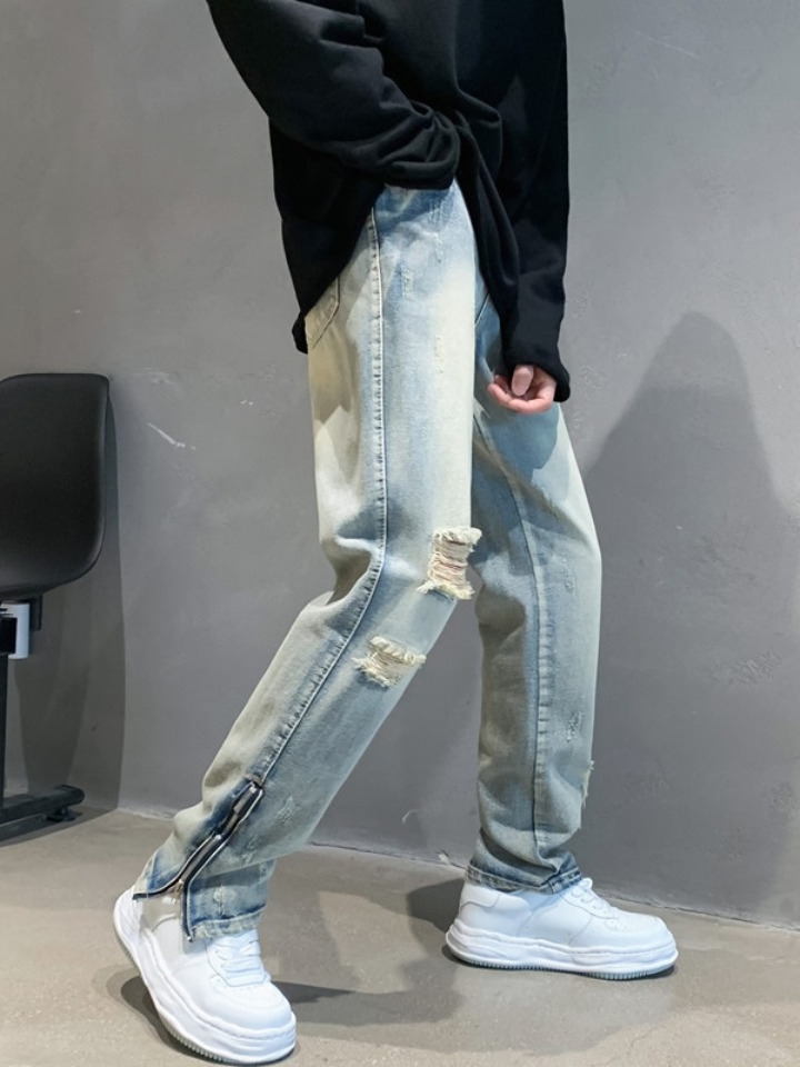 这款简单的破洞牛仔裤百搭又独特,破洞设计得如此有细节感,版型剪裁符合人体工程学,舒适且不挑身材,整体上给人一种潮型清爽的感觉。搭配衣服极显街头风。 做为一名时髦的男士,衣橱怎么能少得了呢?