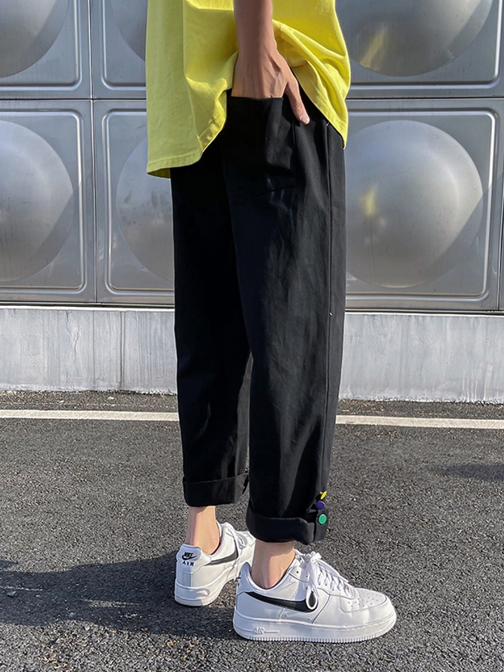 直筒的廓形,裤腿宽松不贴身,穿着自在舒适,纯色的设计,很清爽的色调,很有感觉。厚薄度适中,一年四季都可以穿着。