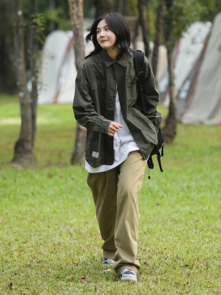 这是一款休闲又百变的衬衫,复古的军绿色配色设计,彰显出你的硬朗气质;立体的工整方领设计,展现出干练的气息;宽松的版型,能够适合多种身材穿搭。