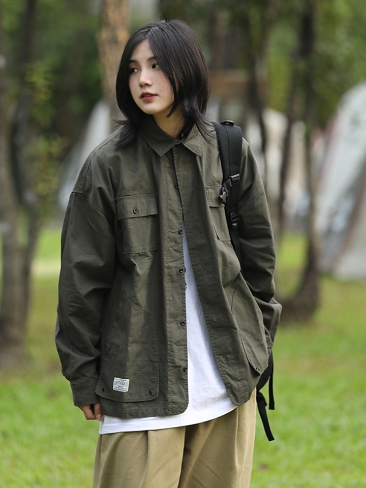 这是一款采用简约风格的设计,干净的纯色让整体更加的不简单。宽松舒适的版型穿着不拘束,上身随性自由。个性翻盖口袋,实用美观增添层次感。门襟单排多扣穿脱方便。