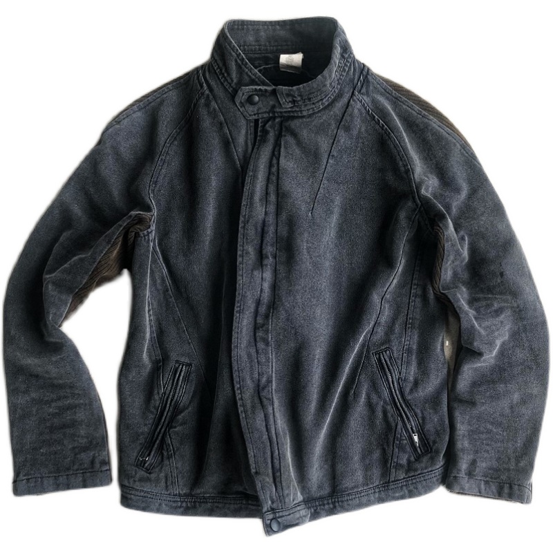 牛仔面料,穿着舒适透气,短款外套,拉长身材比例,经典复古风格,时尚百搭,做旧工艺,彰显复古韵味。