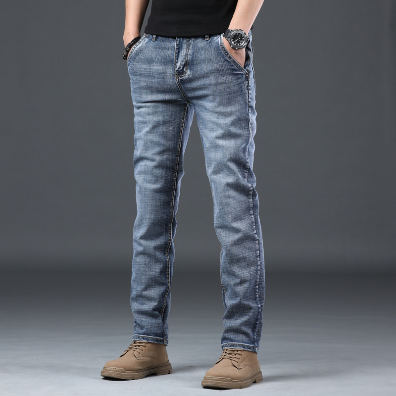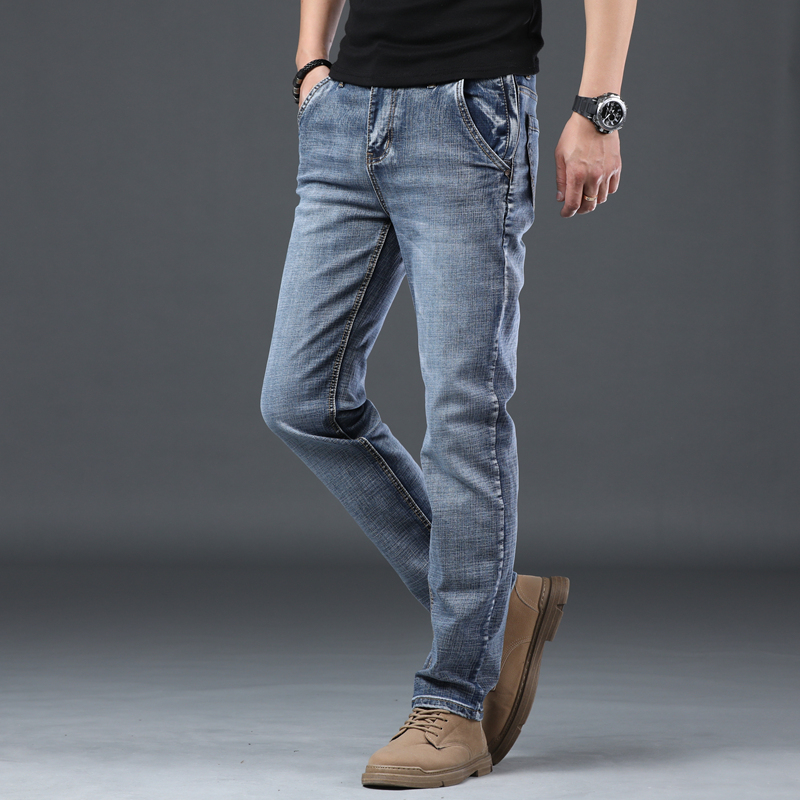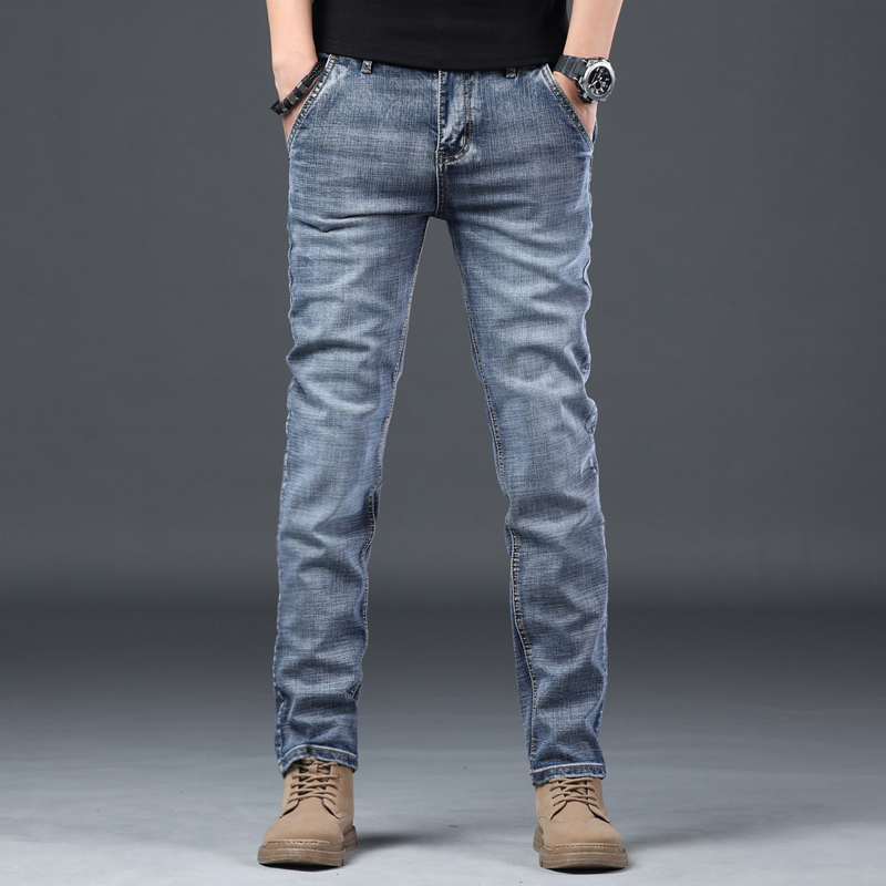 牛仔裤采用了水洗工艺,手感柔软,穿着舒适,修身的版型,上身效果很好,搭配一件T恤,就能轻松穿出时尚感。