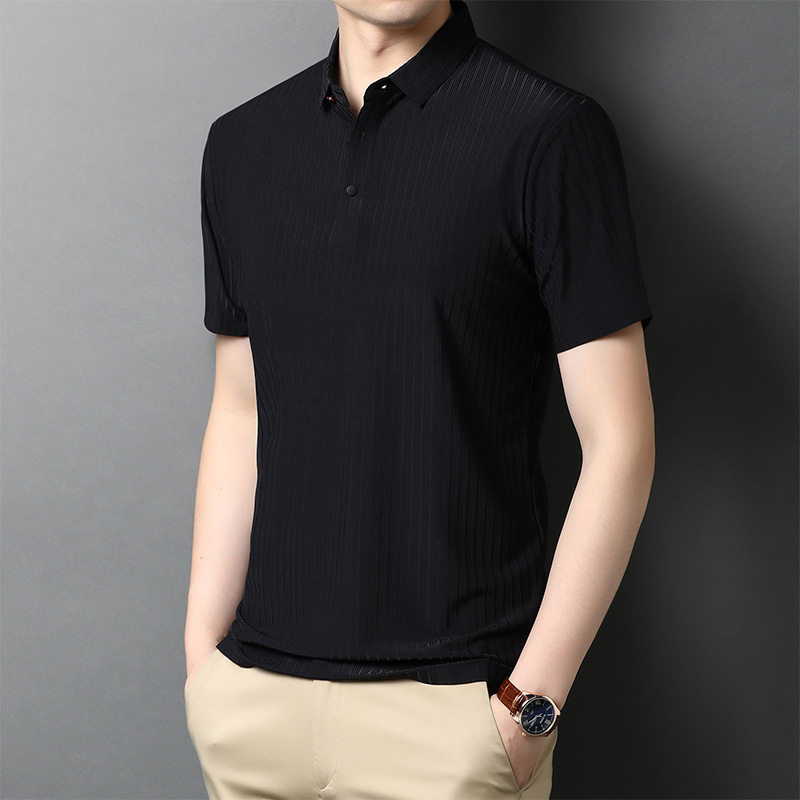 精选优质冰丝面料,柔软亲肤。经典的翻领设计,时尚潮流。立体修身的版型,上身挺括有型。