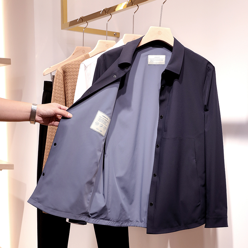 这款夹克采用了经典的翻领设计,搭配上精致的纽扣装饰,彰显男士的干练气质。