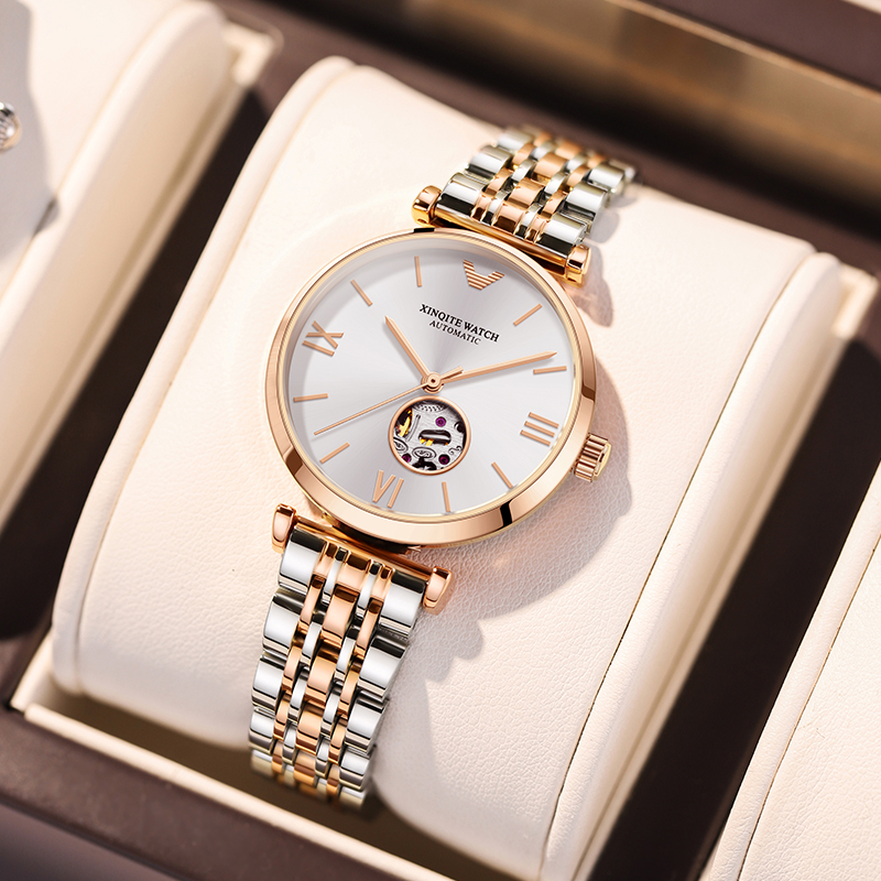 镂空设计,让人眼前一亮,全自动机械机芯,走时精准,佩戴更加舒适。