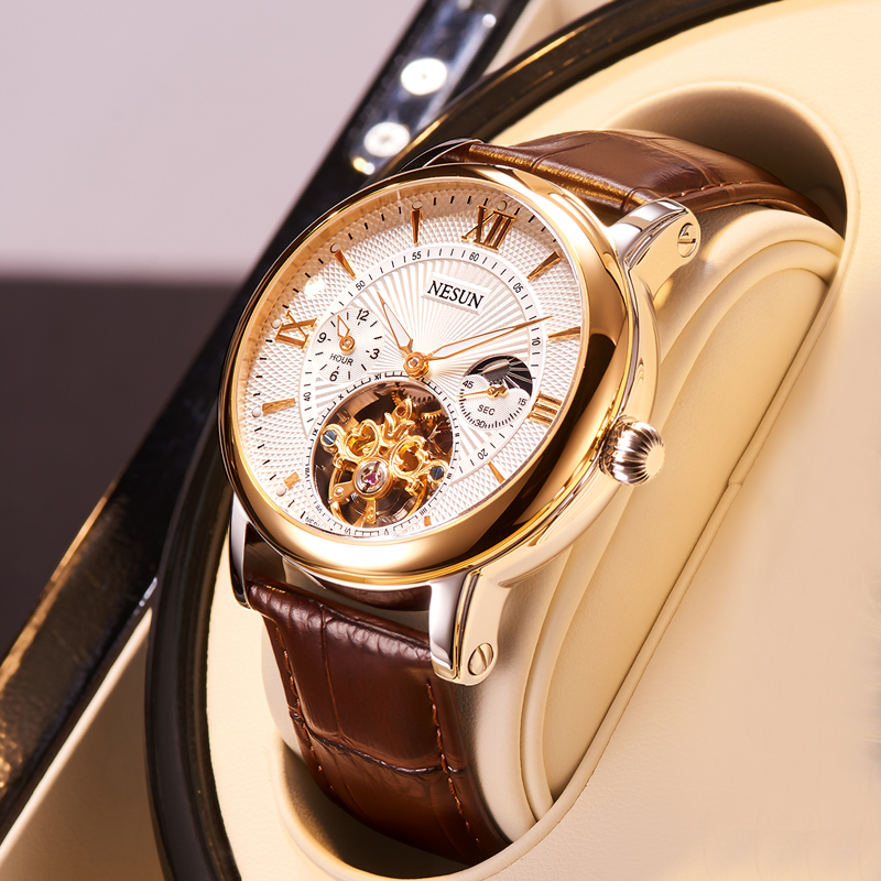 手表采用全自动机械机芯,精准的走时,让你的生活更加的精准,而且还能有效的防止磨损,使用寿命长。