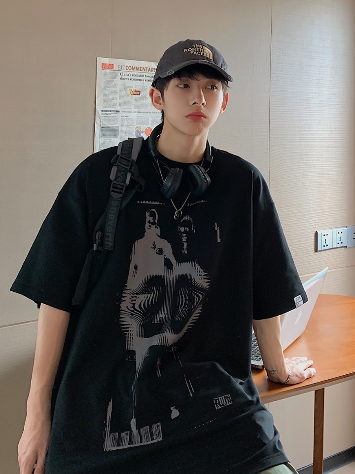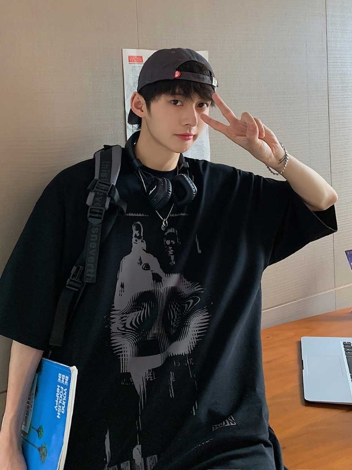 黑色经典T恤,简洁的圆领,加上衣身的字母印花,休闲或帅气各种风格随意转换,随意穿搭,肆意张扬不羁的美。