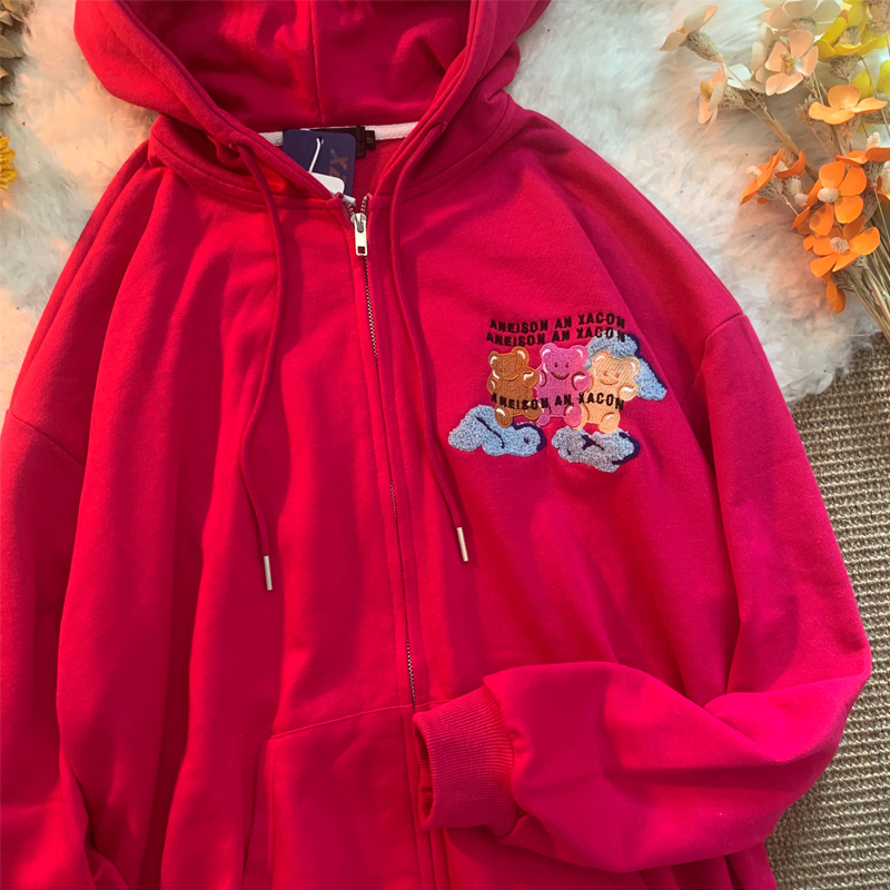 宽松的版型,不挑身材,穿着舒适自在,休闲的连帽设计,修饰颈部线条,胸前的字母印花,增添了几分俏皮感,宽松的廓形,藏肉显瘦,上身休闲时尚。