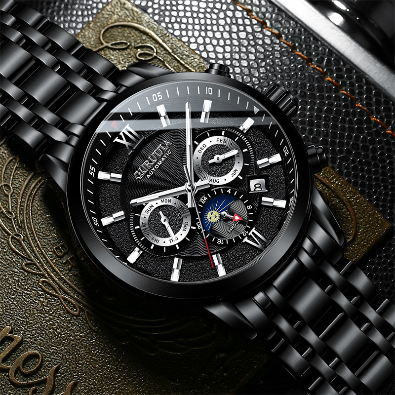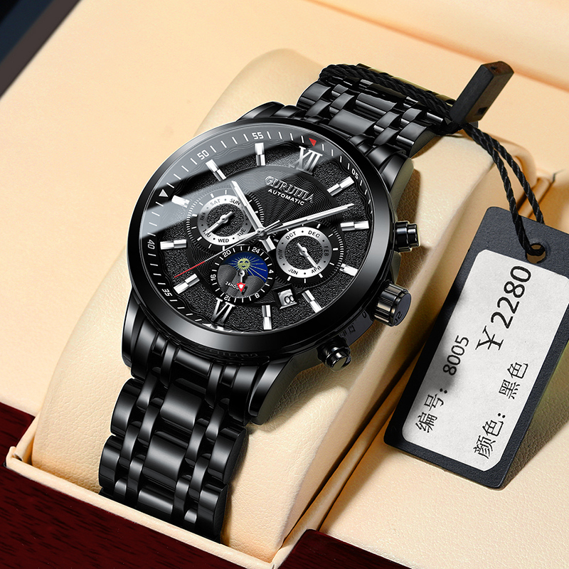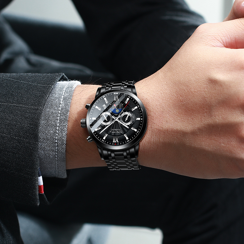 路易伦品牌所出品的一款阿玛妮全自动机械手表,以蓝色为主调,展现简约大方的风格。