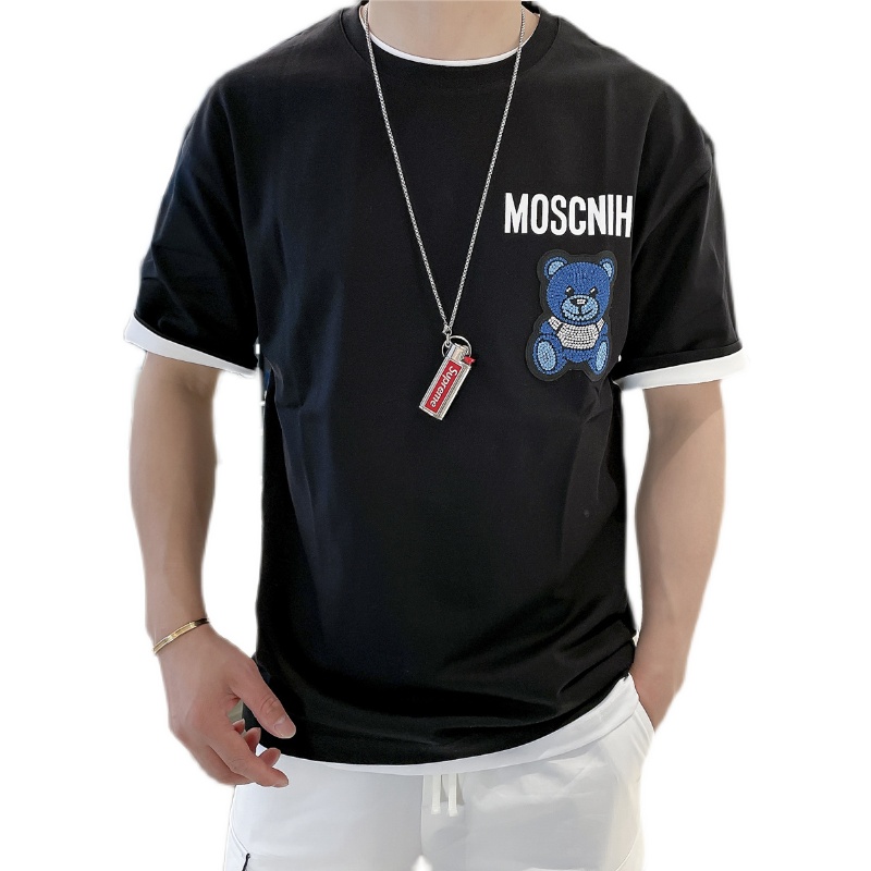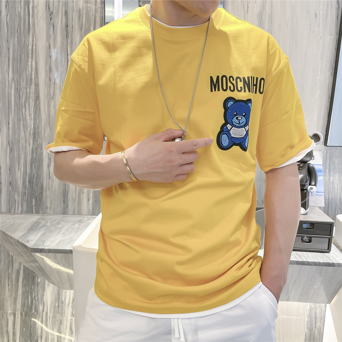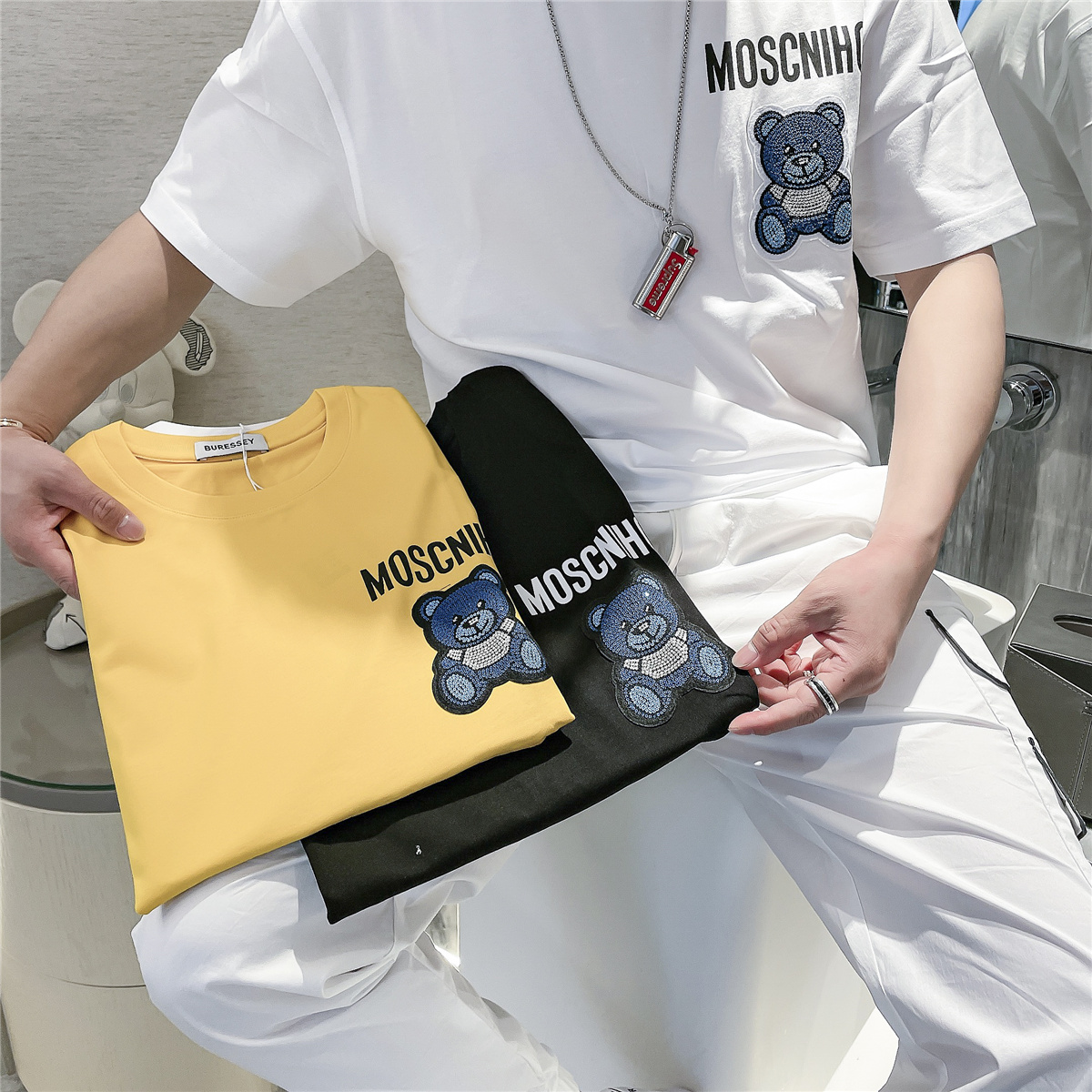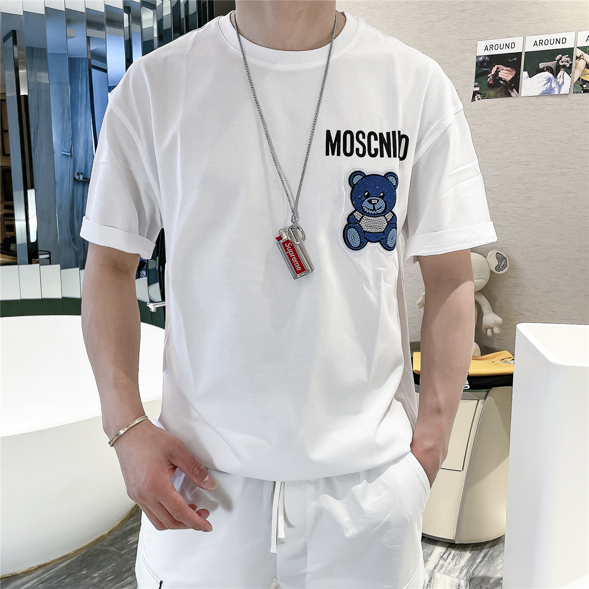 胸前小熊印花,俏皮可爱,宽松t恤,让你轻松驾驭,简约的款式,时尚又百搭,纯棉材质,穿着舒适透气,短袖设计,修饰手臂线条。