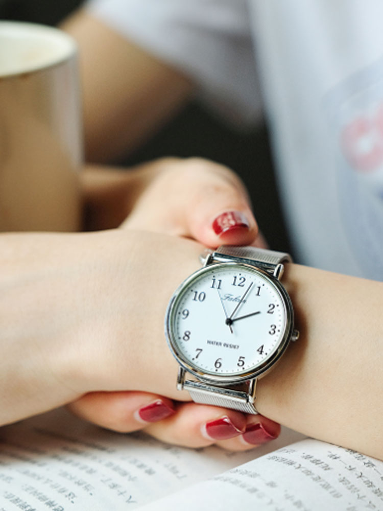 选择圆形的表盘设计,结合撞色的圆点作为刻度,让你精准的把握住每一分每一秒。而精致有范的表框加以银色渲染,则带来了酷炫的机械感。