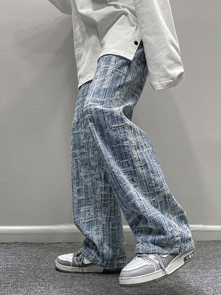 对浅蓝色的牛仔一直带有莫名的好感,清新自然,打造出阳光大男孩的形象,加上充满街头风的提花元素,让这款牛仔裤也是更加的时髦和充满潮范。