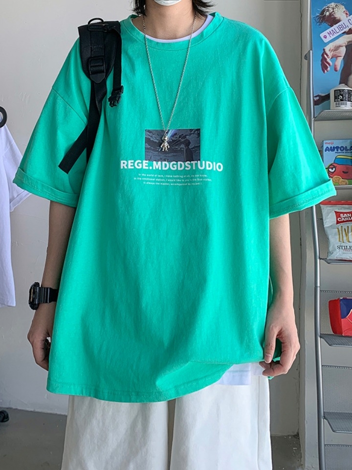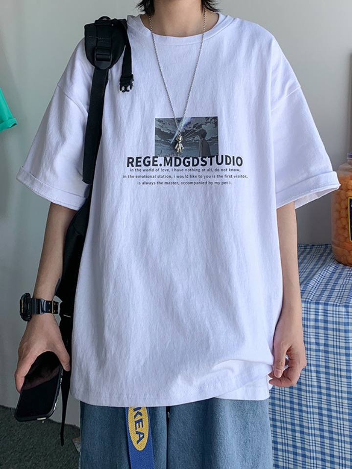 这款t恤是简约的风格,宽松的版型,时尚百搭,胸前的字母印花,很有个性,搭配牛仔裤或者短裤都很好看。