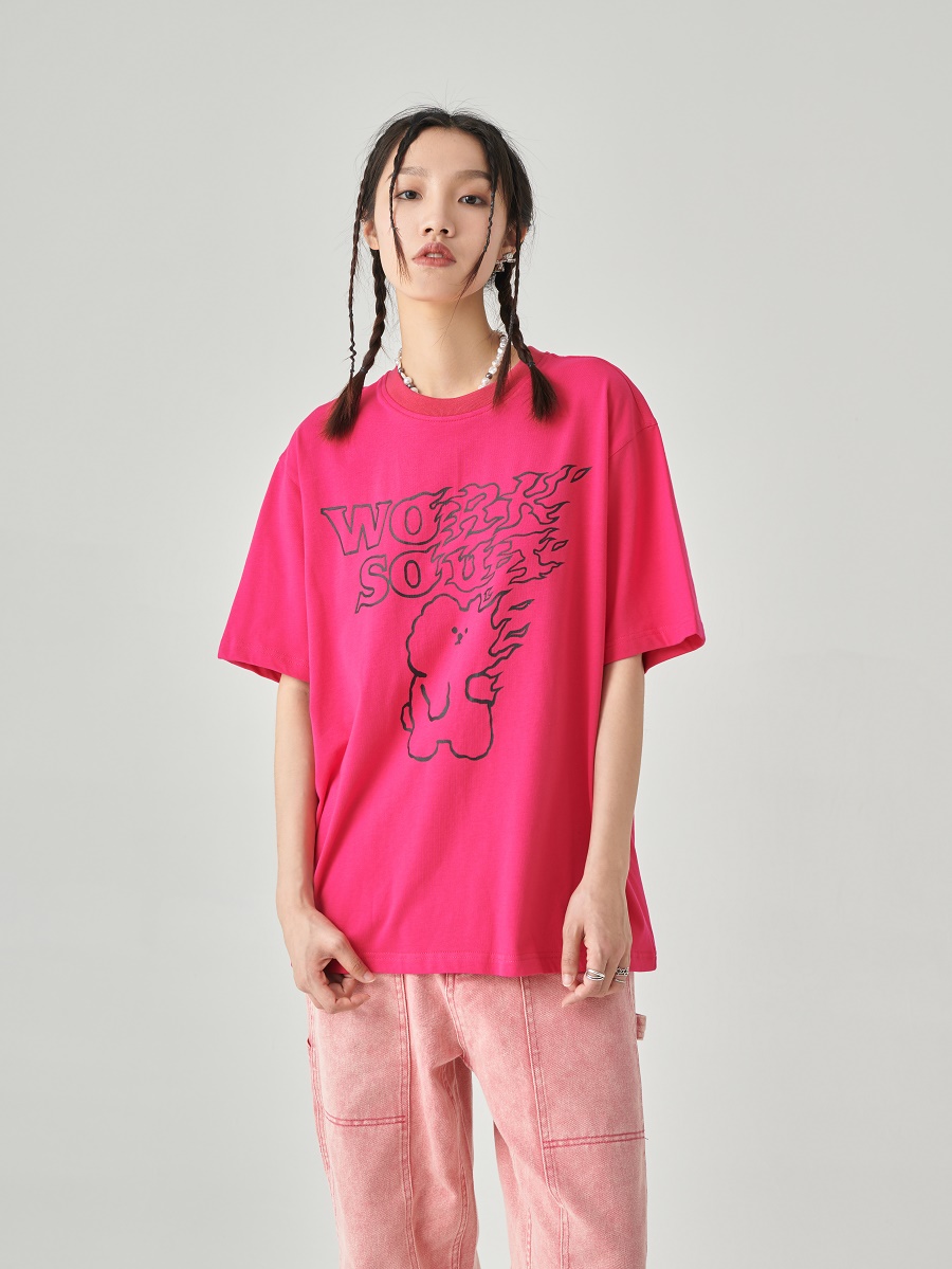 这款t恤是简约的风格,宽松的版型,时尚百搭,胸前的字母印花,很有个性,搭配牛仔裤或者短裤都很好看。