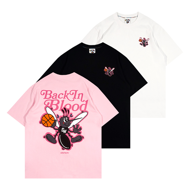 宽松的版型,穿着舒适自在。经典圆领设计,简约大方。卡通印花图案,趣味十足。