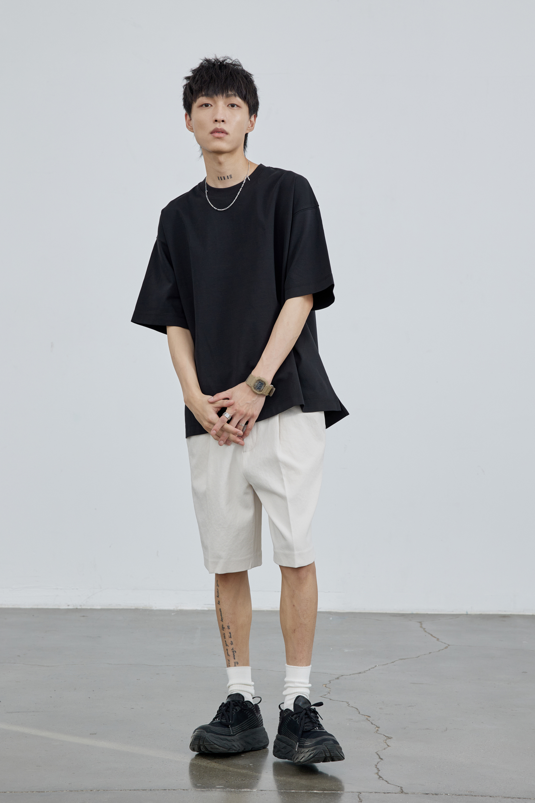 简约的高腰设计,搭配上修身的版型,上身显瘦又显高。