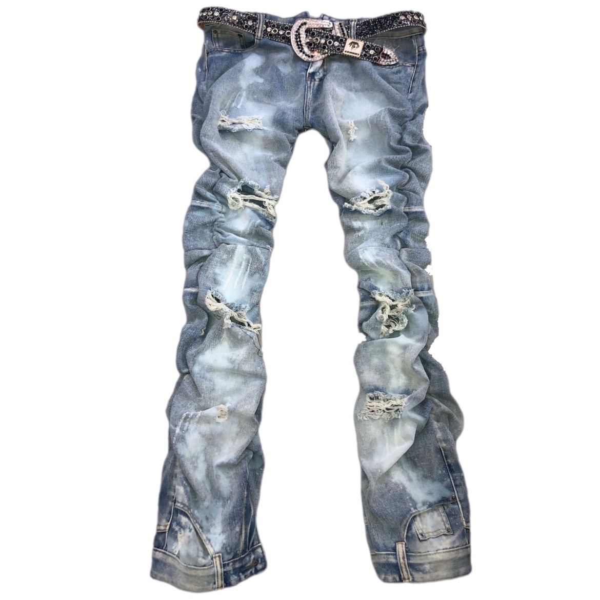 这款牛仔裤的设计很有特色,高腰的版型,很好的修饰了身材比例,显瘦效果很棒,搭配一件T恤,就能轻松穿出时尚感。