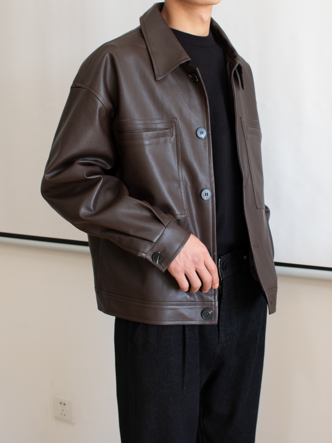 这款宽松夹克服设计了经典黑色,反复水洗之后,皮质展现出自然光感,而oversize的廓形设计,更是添加了一份帅气与精彩。搭配上一条阔腿设计的卡其色休闲裤,更显闲适自由。