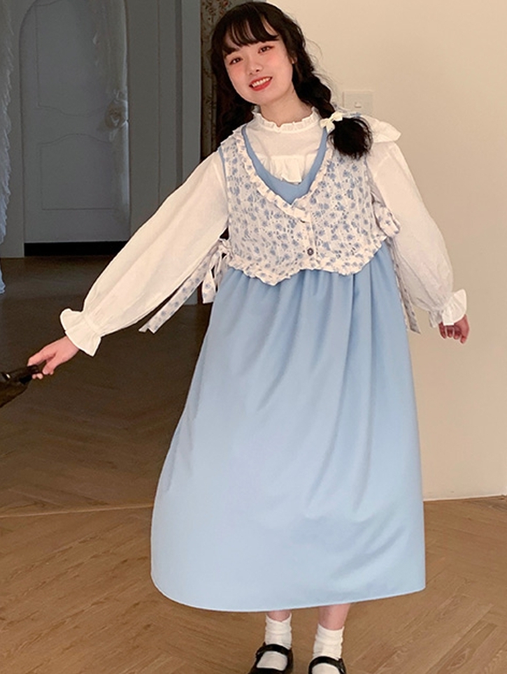 很是简单而又随性大方的连衣裙,精致的版型搭配着拼接的元素,在呈现假两件效果的同时,很有日系的 甜美味儿呢。