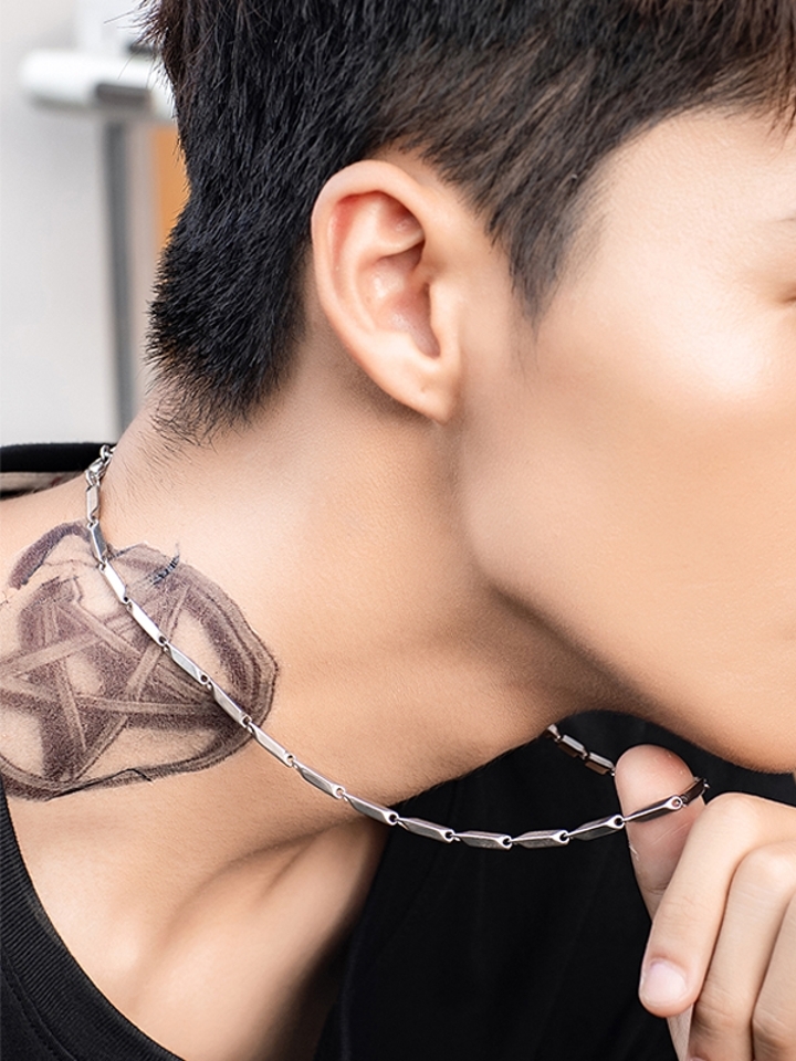 性价比很高,配中高领毛衣也很赞,男朋友单挂锁骨➕肌肉绝不错 也没发现又掉色 颜色也好看 值得购买 棒棒哒