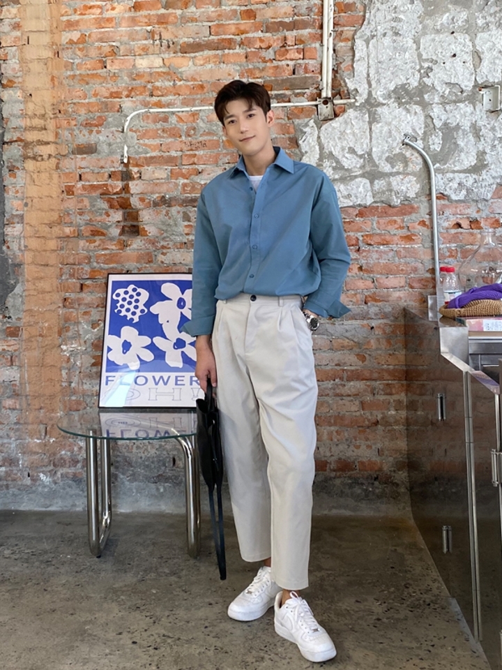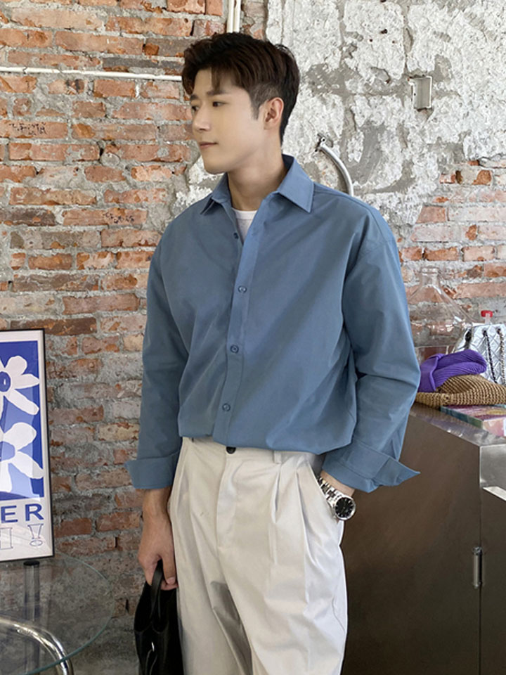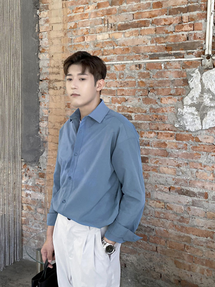 这款蓝色的衬衣,恰到好处的色系,散发出玉石般温润的光泽感,硬朗的版型,舒适的质感,可以完美搭配出多种风格哦。