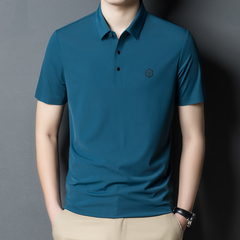 采用优质面料,手感细腻,轻薄透气,穿着舒适,经典的翻领设计,修饰颈部线条,彰显男士的干练气质,胸前的印花图案,增添了几分时尚感。
