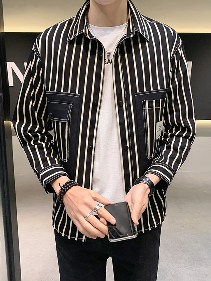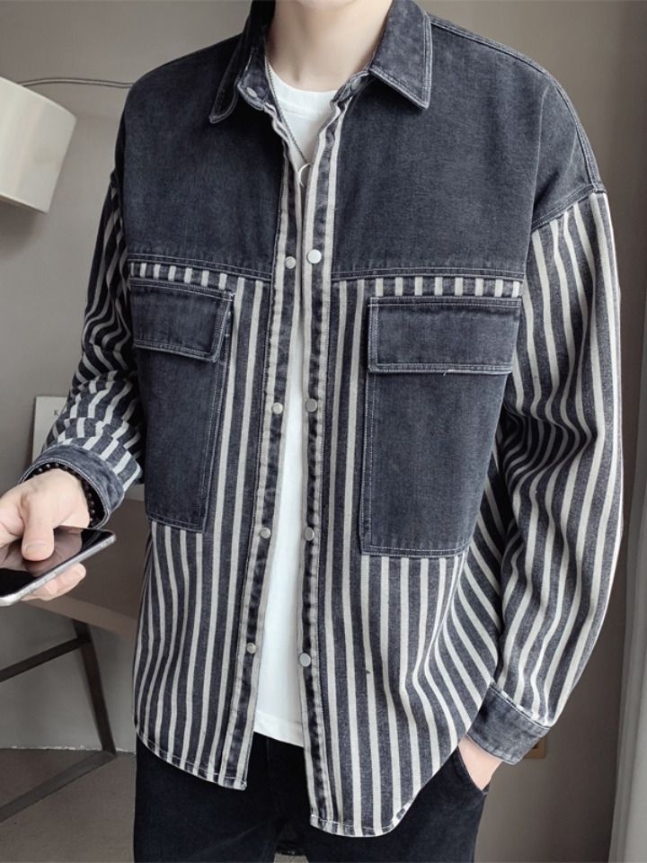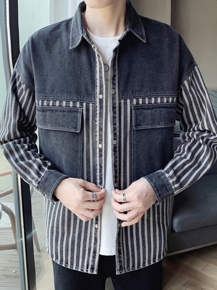 这款外套采用了牛仔条纹面料,既凸显出时髦感,也展现不羁的牛仔风气息。胸前的口袋,丰富层次感也兼具实用性。手臂以及衣身的字母拼贴元素,透出男士阳刚的味道。