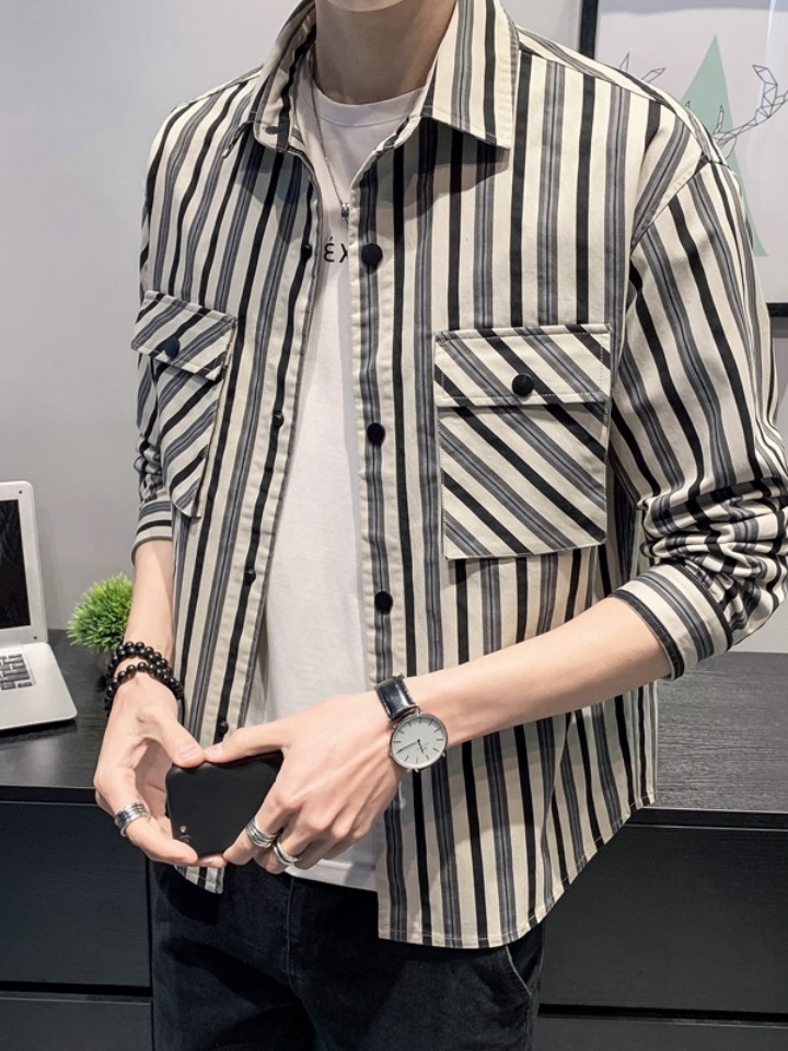 韩版气质衬衫,小立领搭配蝴蝶结,增添优雅气息。单排扣门襟,版型修身,经典又好穿。很带感的面料,有点光泽,撞色条纹看起来非常潮。