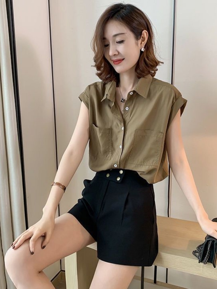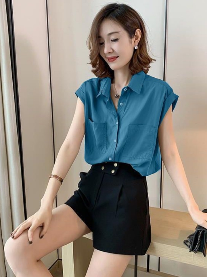 短款衬衫配上经典翻领,感超显气质,搭配裙装、裤子,视觉加倍清爽,给整体造型加分。