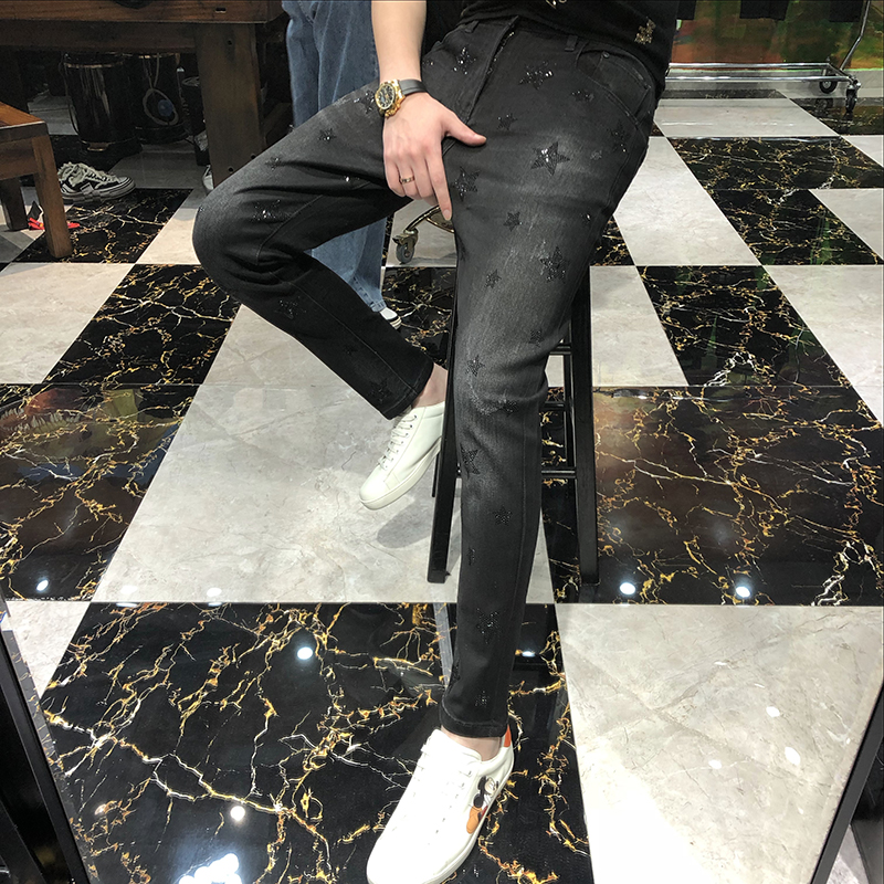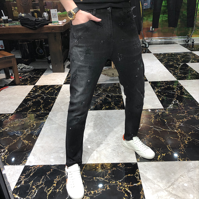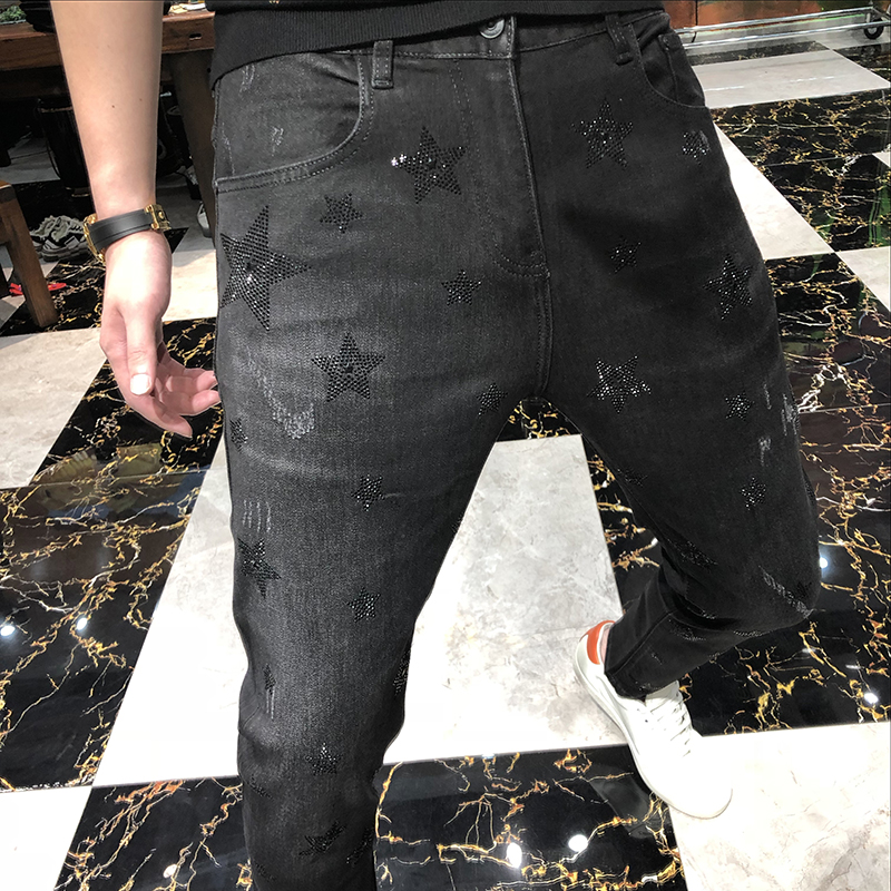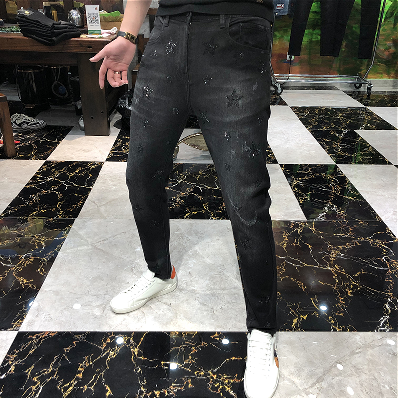 牛仔裤的版型,修身显瘦,裤脚的毛边设计,彰显个性,时尚百搭。