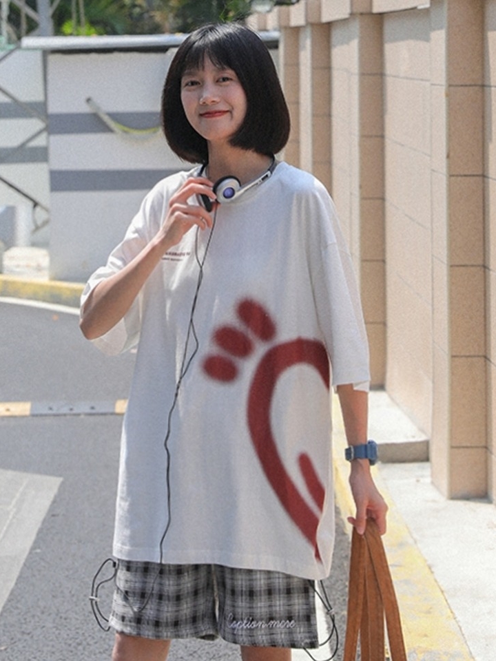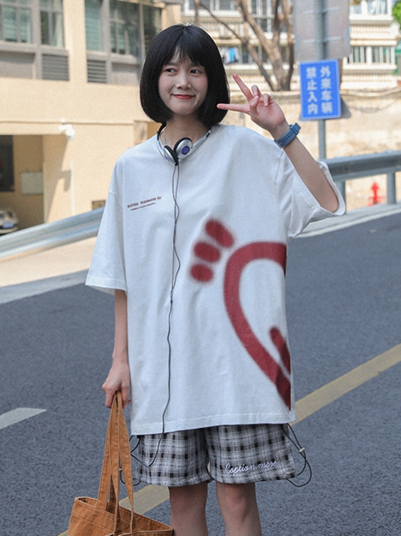 充满了爱的短袖,就是让我爱不释手啊,休闲的气息中,因侧边的爱心印花设计,拥有很好的设计感,两个人一起穿上更显浪漫感呢。
